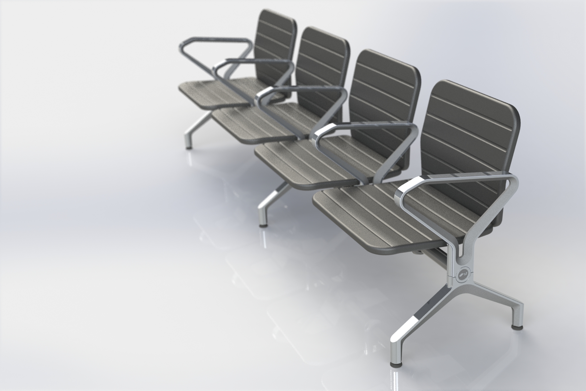 Designed for Street Furniture Australia, Termin (2019) is a beam-mounted seating system for transport lounges. Die cast aluminum frame with foam moulded seat pad and back.
